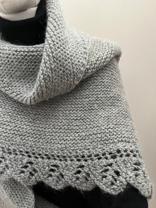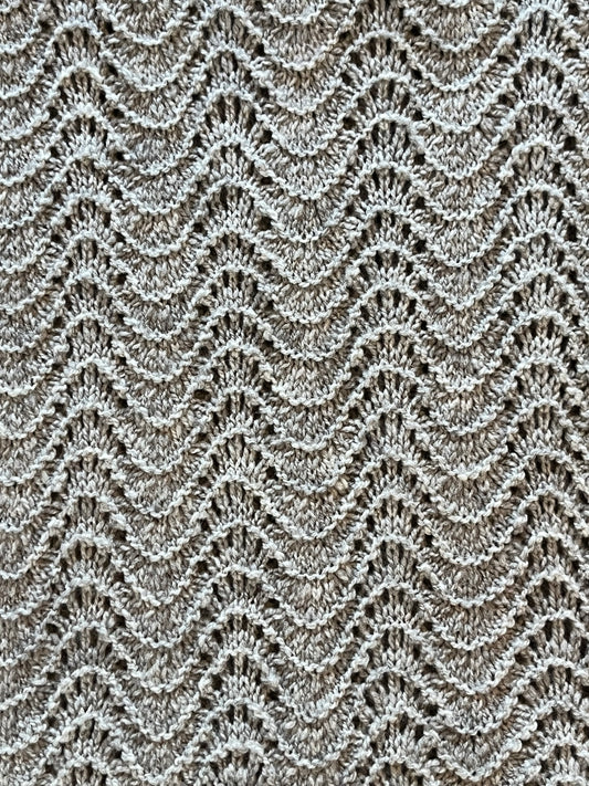 Una puntada de encaje tradicional de las Islas Shetland que utiliza hilo digitado con lana americana sin teñir criada en el alto desierto de Oregón e hilada en Imperial Yarn.
