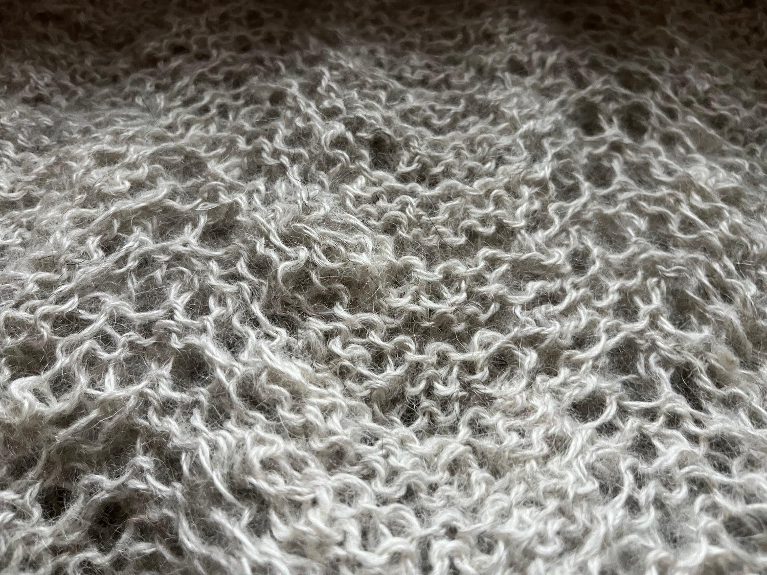 Un point de dentelle traditionnel des îles Shetland utilisant le doigté avec de la laine américaine non teinte pâturée dans le haut désert de l'Oregon et filée en fil impérial.